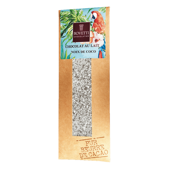 Allow yourself to be tempted by this milk chocolate bar with coconut! Carefully selected ingredients, true craftsmanship, and the passion of a master chocolatier make this bar a pure delight! You'll melt with happiness!