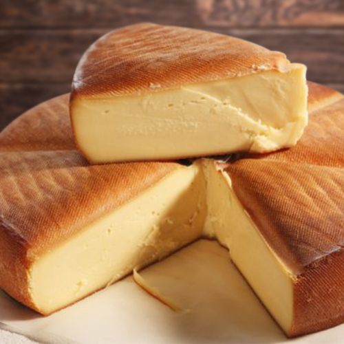 Brezain is a semi-hard Raclette-style cheese made from pasteurized cow's milk. The cheese is produced in the region of Haute-Savoie, where it must mature for at least 5 months. Its name is derived from the word braisé, which means embers, referring to the method of smoking the cheese over beech and juniper wood, giving it an attractive amber coloured rind and a unique flavour.