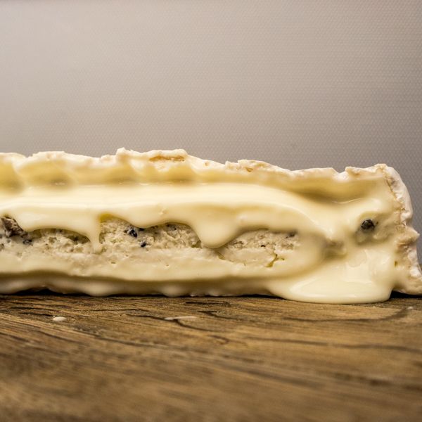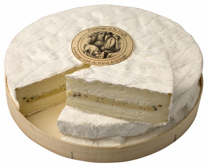 This small Brie cheese is the result of a noble marriage between cheese and the truffles of Perigord. The delicate yet powerful flavour of the truffles blends into the dense ad rich paste.and produces a delightful creamy, mushroomy combination.