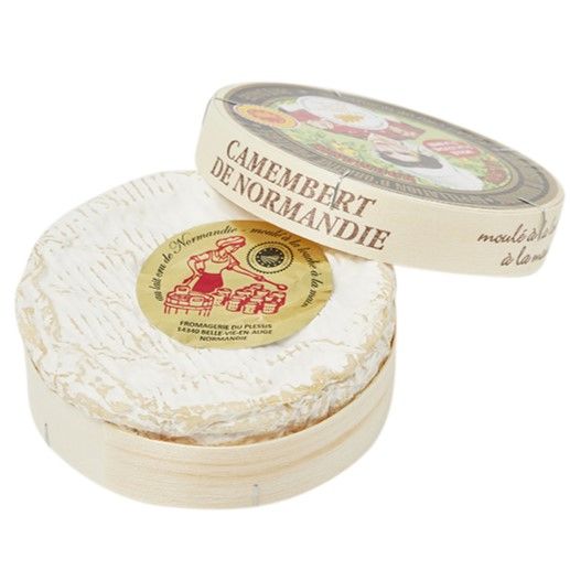 From Normandy , an unpasteurised cow's milk Camembert made from the milk of cows fed exclusively on grass and hay.The classique 250g size in a wooden box, this cheese reveals a rich fruity , yeasty flavour and edible bloomy rind.