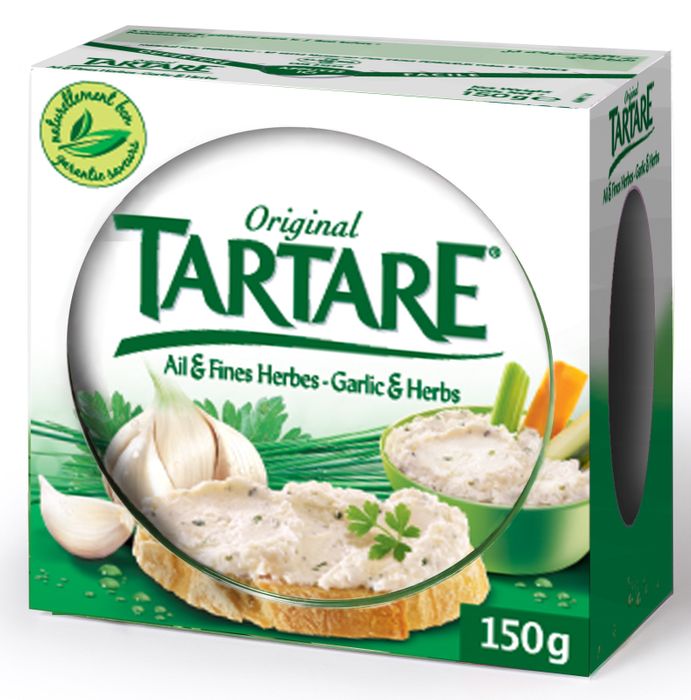 Created in the Dordogne in 1964, the now-famous recipe for Tartare Garlic & Fine Herbs has been a hit with several generations. This has become one of the great spreadable cheese classics. For over 50 years, people have loved Tartare for its freshness and unique taste. Its secret is the intensely flavoured natural ingredients combined with whipped cheese to preserve all their taste.