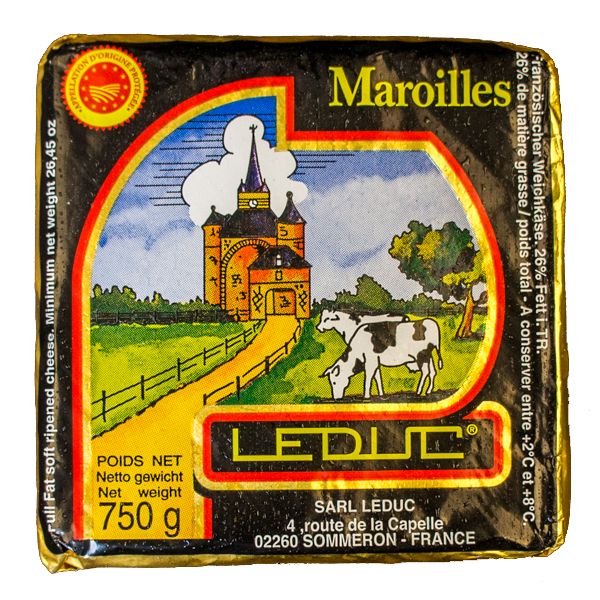 Maroilles is charesterised by a pungent smell but the the taste is soft and creamy when ripe, with a slight sweetness and lingering flavour. It is a great end-of - meal cheese. It goes with brown ale , a French cider, a refined brandy or an aromatic white such as late harvest Gewurztraminer