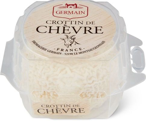 Crottin de Chèvre Germain is a moulded goat cheese made from pasteurized milk and matured in the Berry region. Under its fine, white rind hides a firm and slightly crumbly texture with a delicate taste. Delicious!