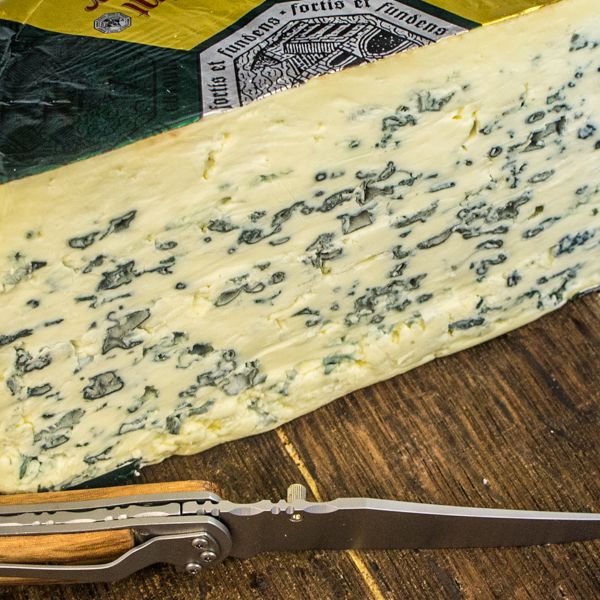 The moist, rich, white cheese has characteristic olive green mould veins throughout and a smooth, creamy texture with a subtle mild spicy taste. Not as salty as other blue cheese, it’s tangy and double-creamy nature are well balanced and make the cheese easy to spread or to cook with.