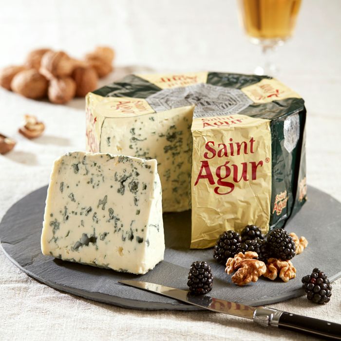 Saint Agur is a blue cheese made from pasteurised cow's milk in the village of Beauzac from the mountainous French region of Auvergne. Since 1988, the Bongrain Cheese Company has been manufacturing this double-cream cheese.