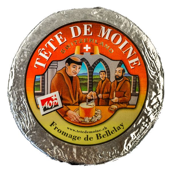 It is believed that the monks staying at Moutier - the mountainous zone of the Bernese Jura - manufactured this cheese, and hence the cheese takes the name 'Tete de Moine' meaning 'Monk's Head'. In 1982 the Girolle was invented, a machine which makes it possible to make ‘rosettes’ of Tête de Moine by turning a scraper on an axle planted in the centre of the cheese.