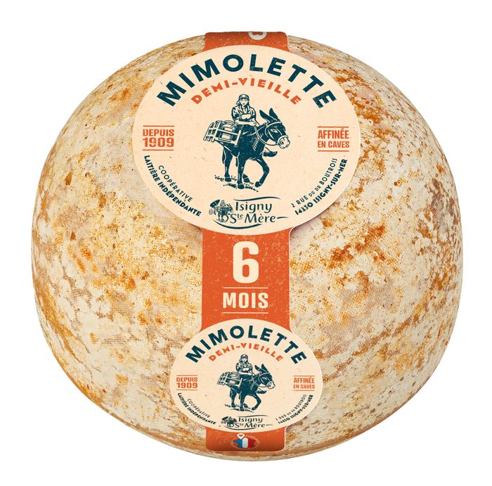 Mimolette is a hard, round, “bowling ball” shaped, orange cheese made from pasteurised cow’s milk. It was traditionally produced around the city of Lille- hence it’s second name “Boule de Lille”. Before that, in the early 18th century, Mimolette was called “Vieux Hollande” because it was inspired by the Dutch Edam cheese. To distinguish the French version from Edam, the first Mimolette was coloured with carrot juice, but later annatto, a natural plant colouring, was used to give its distinctive rich orange colour.