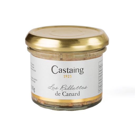 Duck rilletes Castaing is artisan made from pulled duck meat, duck fat and salt. Duck rilletes Castaing can be paired with fruity white wines.