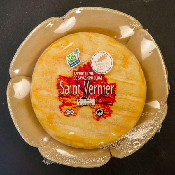 Saint Vernier is a cheese created by the Jean Perrin factory located near Besancon, Jura. It’s a wonderful creamy cheese with a washed rind with the local white sauvignon wine and aged for a few months in the cellar. St Vernier has a lovely silky texture and a powerful, yet subtle taste.